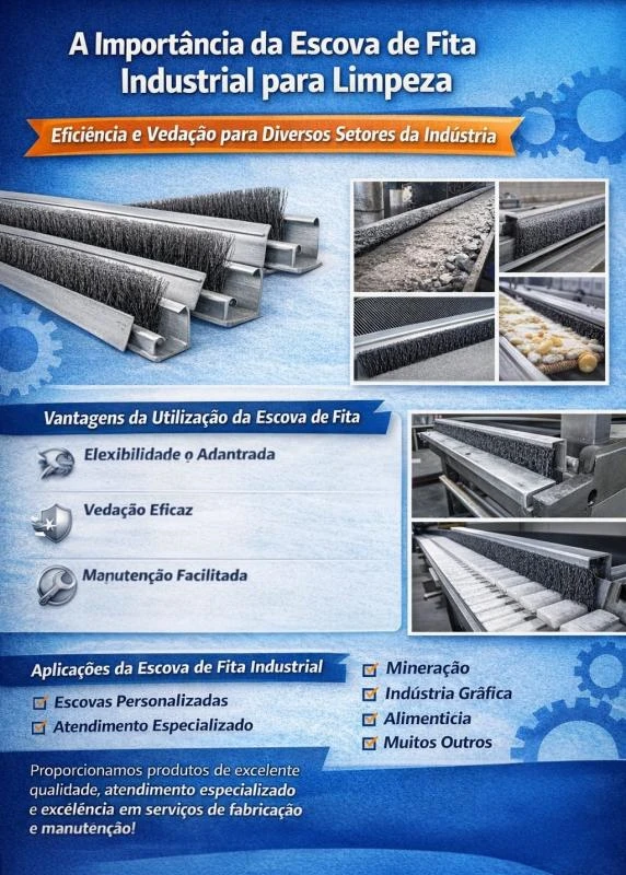 Além disso, essa escova é ideal para guiar peças em esteiras, evitando quedas ou desalinhamentos durante o transporte, o que contribui para a eficiência dos processos industriais.