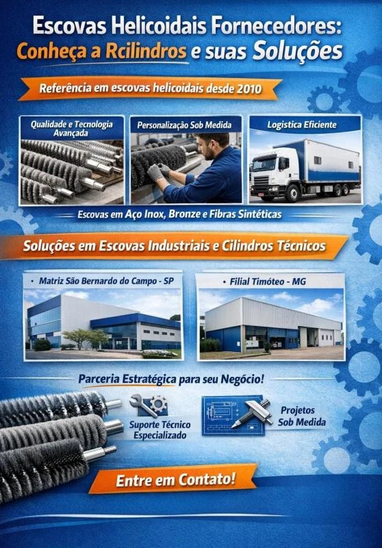 - Alto Rendimento: As escovas helicoidais da Rcilindros são projetadas para suportar o uso contínuo, proporcionando excelente performance em cada aplicação;